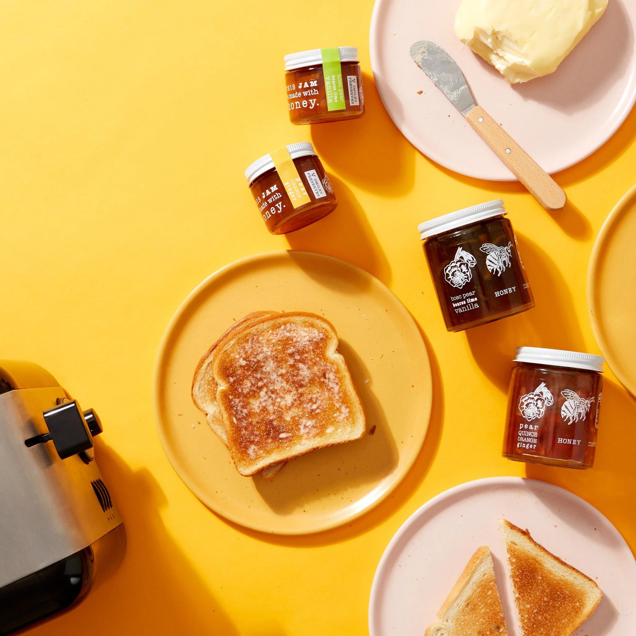 V Smiley Preserves makes sense here. The honey I use comes from across the lake. Amy, my partner, grows the aromatics, and year by year, she and my mother Susan layer in more fruit from this family land.