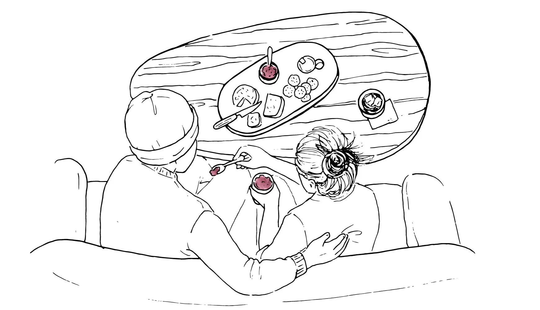 Pile stacks of pickles, ham, mustard, and baguette on a cheese board with our Cherry Fennel Sherry Honey Jam. This savory jam (+ customer favorite) is complex and surprising.