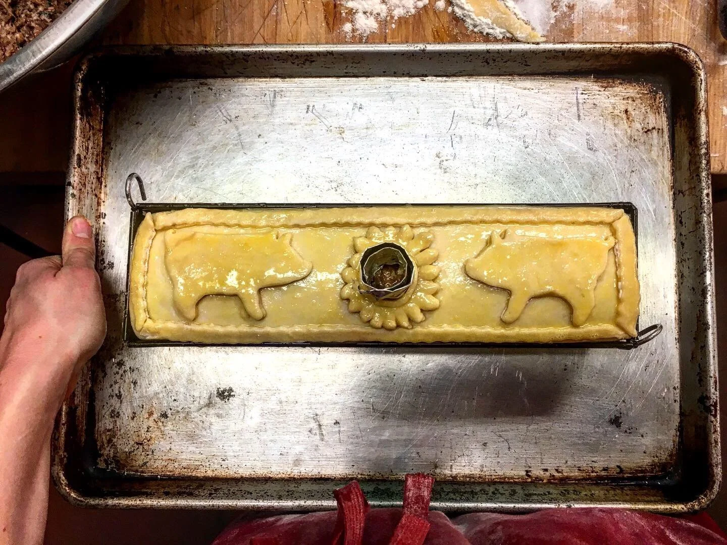 Hannah’s first pâté en croûte, a French charcuterie dish consisting of a pâté, or forcemeat, encased in a crust and baked.